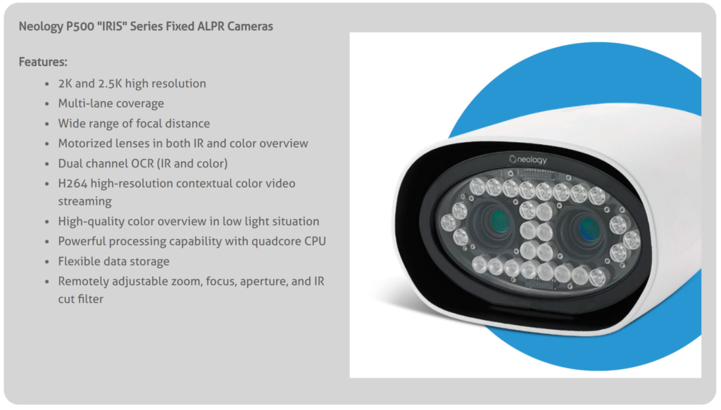Solar powered license plate recognition cameras provide the ability to position cameras in strategic locations that do not have access to a wired power source.