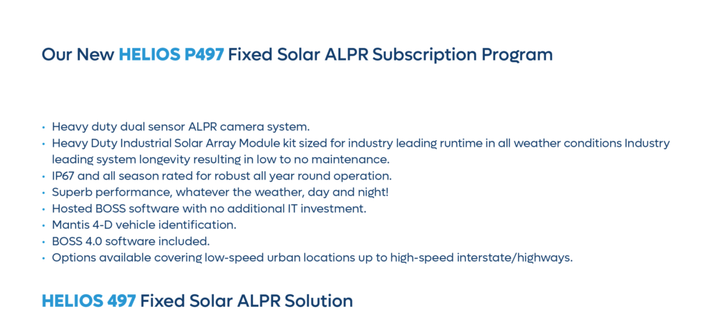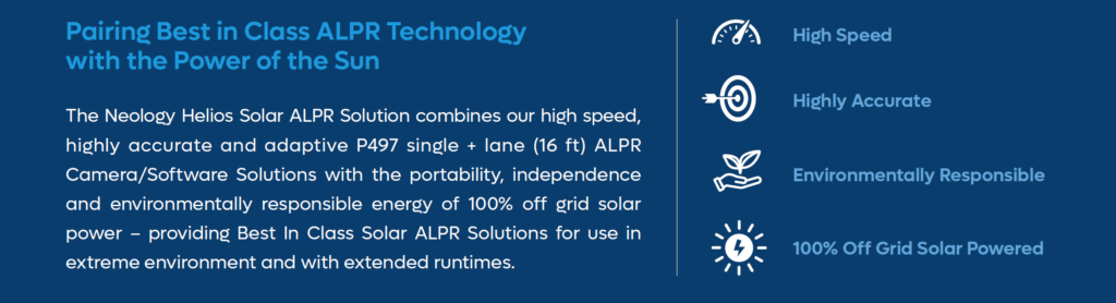 The Helios is a solar powered ALPR camera solution for locations that do not have easy access to constant electricity.